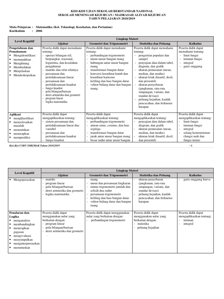 Xii / mipa alokasi : ∙ promo pengguna baru ∙ kurir instan ∙ bebas ongkir ∙ cicilan 0%. Kisi kisi usbn sma bahasa tahun 2019 atau tahun pelajaran 2018 2019 bahasa matematika sma. Pada level kognitif pengetahuan dan pemahaman, siswa harus mengidentifikasi, menjelaskan, memberi contoh, menghitung, dan membaca. No files in this folder. Sebentar lagi kalian semua akan menghadapi ulangan ujian akhir sekolah (us/uas) semester genap, maka dari itu kami selaku admin ilmuguru.org ingin berbagi kepada kalian semua mengenai kisi. Nah bagi bapak dan ibu guru pelajar smp kelas 9 yang membutuhkan soal dan kunci jawaban usbn matematika smp kurikulum 2013 tahun pelajaran 20182019 silakan ada di bawah ini. Your files are kept safe and never used for ads. Pada level kognitif pengetahuan dan pemahaman, siswa harus mengidentifikasi, membandingkan, menentukan, menghitung, mengklasifikasi, menjelaskan. No files in this folder. Matematika peminatan banyak soal : Bedah kisi kisi usbn sd 2020 matematika dan contoh soal. Dapatkan informasi, inspirasi dan insight di email kamu.